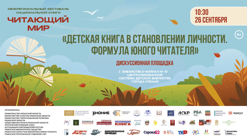 26 сентября в 10:30 в библиотеке-филиале № 10 Централизованной системы детских библиотек города Рязани состоится дискуссионная площадка «Детская книга в становлении личности. Формула юного читателя».
