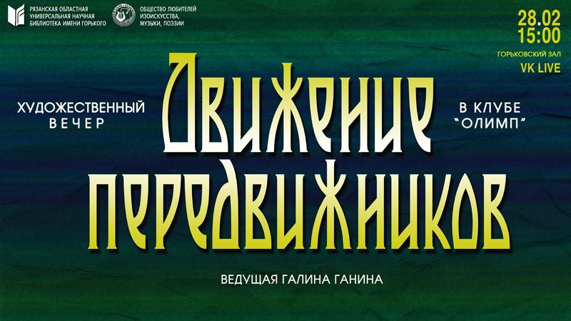 28 февраля в клубе «ОЛИМП» состоится художественный вечер, посвященный движению передвижников – масштабному явлению в русской культуре последней трети XIX – начала XX века.