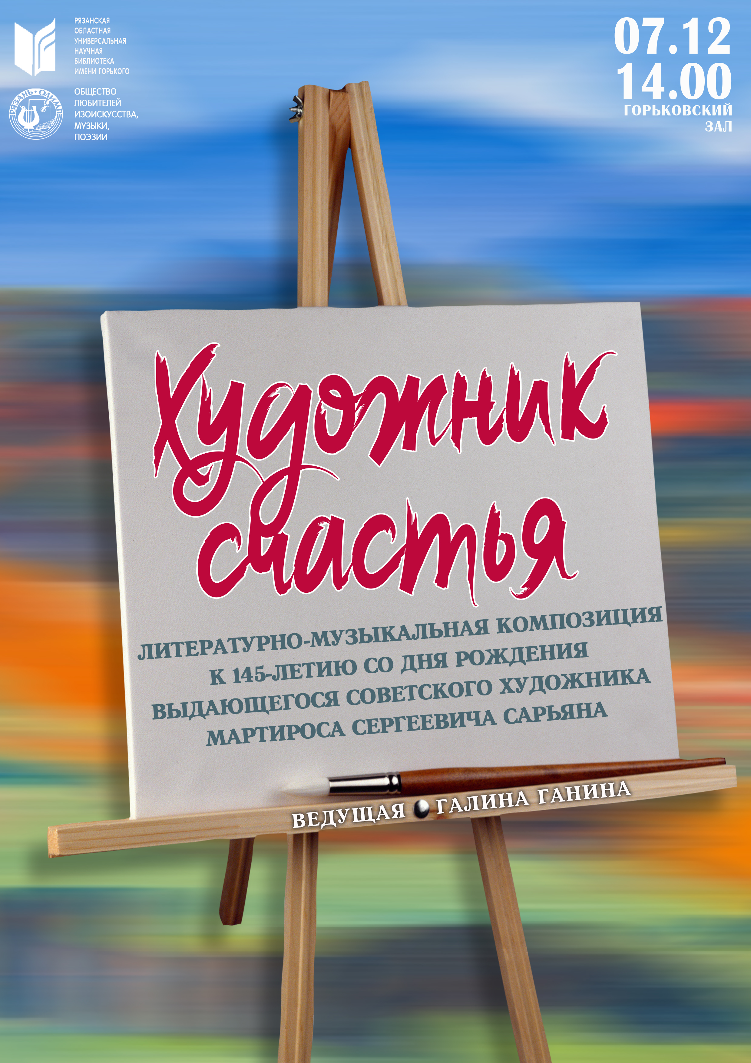 7 декабря на очередном заседании клуба «ОЛИМП» в библиотеке имени Горького состоится литературно-музыкальная композиция «Художник счастья», посвященная 145-летию со дня рождения советского армянского живописца Мартироса Сарьяна.