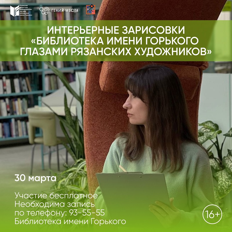 Друзья, 30 марта пройдет наша новая встреча «Интерьерные зарисовки "Библиотека имени Горького глазами рязанских художников"».