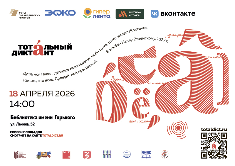 18 апреля по всему миру пройдет Тотальный диктант – ежегодная культурно-просветительская акция, направленная на формирование интереса к изучению русского языка и повышение уровня грамотности. Онлайн или на офлайн-площадках участники напишут одну из четырех частей текста, созданного писателем, лауреатом премии «Большая книга» Алексеем Варламовым.