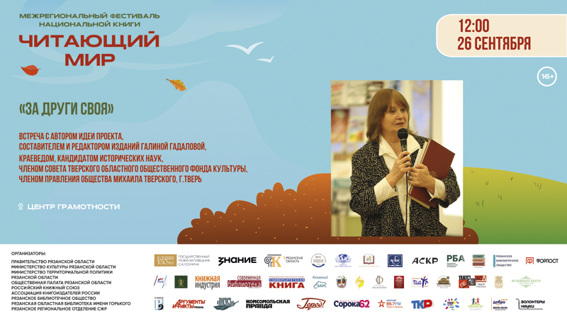 В рамках Межрегионального фестиваля национальной книги «Читающий мир» состоится презентация серии книг «За други Своя» Галины Гадаловой.