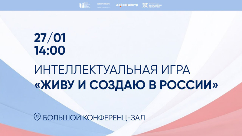 27 января в 14:00 Добро.Центр «Волонтеры культуры» на базе Рязанской областной универсальной научной библиотеки имени Горького проведет интеллектуальную игру «Живу и создаю в России».