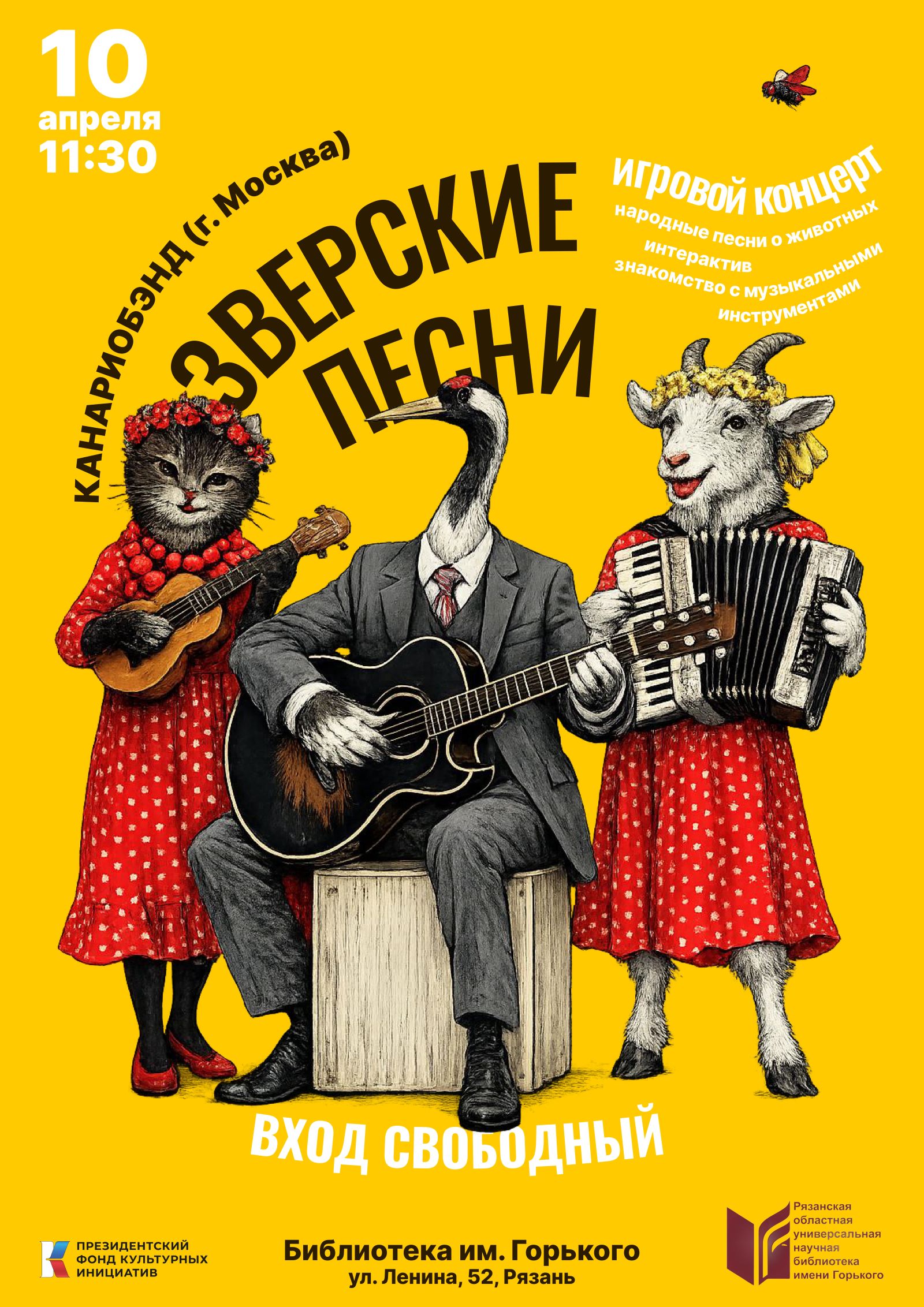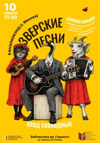 10 апреля в молодежной секции клуба «ОЛИМП» состоится игровой концерт «Зверские песни» выездного музыкально-театрального проекта «Канариобэнд» (г. Москва).
