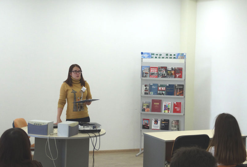 Сегодня в рамках фестиваля «День знаний в библиотеке» для учеников старших классов средней общеобразовательной школы №8 прошел библиотечный урок «Антитеррор: мир без насилия».
