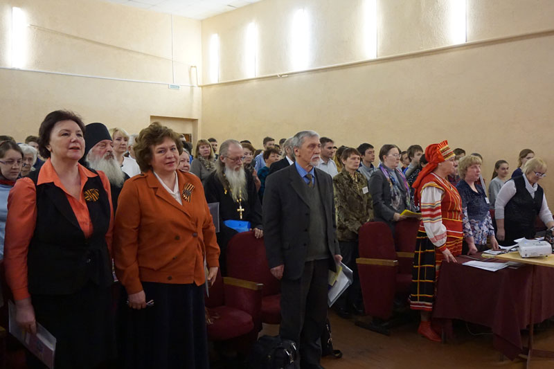 Организатор и ведущая научно-практической конференции Нина Ивановна Левашова выступила с докладом об А.В. Александрове как музыкальном символе эпохи. О его вкладе в сокровищницу русской духовной музыки рассказал протоиерей Георгий, клирик Воскресенского храма Рязани.