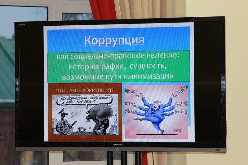 Преподаватель кафедры криминологии и организации профилактики преступлений Академии ФСИН России Ольга Константиновна Хотькина рассказала собравшимся о том, что коррупция была и остается одной из глобальных проблем, стоящих перед мировым сообществом. Это явление поразило все слои общества, сферы деятельности и институты, то есть стала системной проблемой, без решения которой невозможно дальнейшее развитие страны.