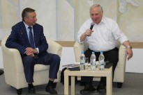 Доктор физико-математических наук Владимир Анатольевич Степанов рассказал о том, как важно было решить проблему посадки самолетов в сложных условиях и о разработке лазерной системы посадки. Когда пришло время беседы с аудиторией, Александр Иванович Холод с ностальгией рассказал о ночных полетах на МиГ-25, а Сергей Алексеевич Морозов поделился своими мыслями о воспитании и обучении нового поколения авиаторов.
