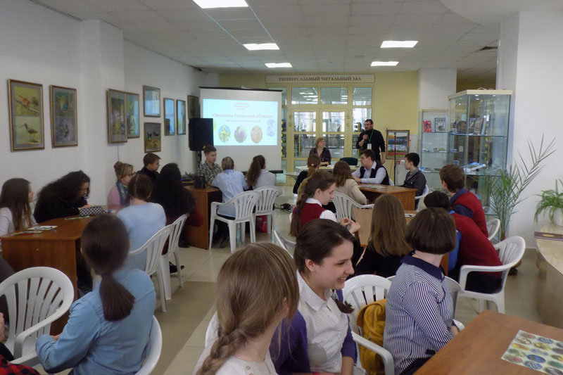 Ребята увлеченно готовились к игре, изучали книги по природе Рязанского края, в результате смогли ответить на вопросы ведущей – сотрудника краеведческого отдела Оксаны Смирновой: где находится исток реки Оки, почему С.А. Есенин назвал Рязанскую область «страной березового ситца», животных или растений больше в Красной книге Рязанской области и на многие другие.