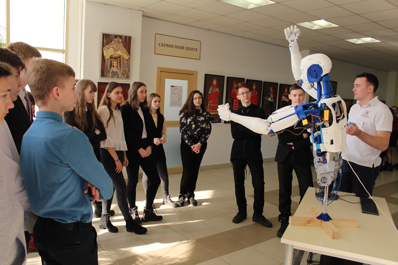 Ребята познакомились с роботом InMoov, корпус которого полностью напечатан на 3D принтере.