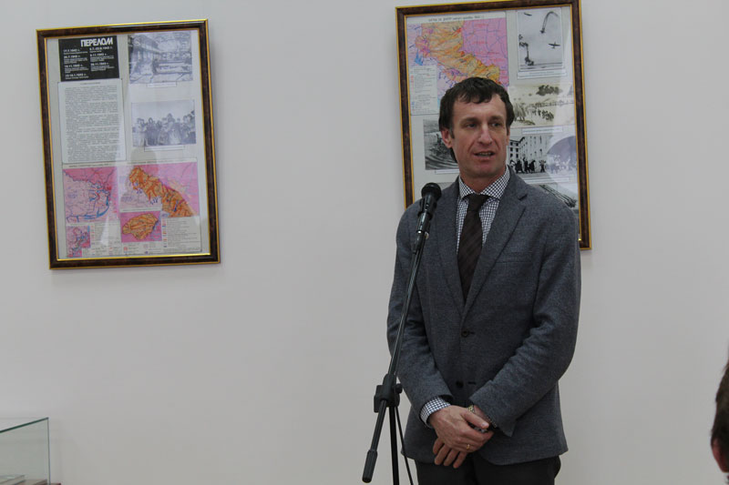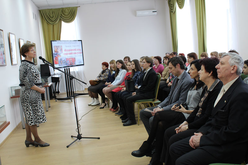 Обзор выставки провела Наталья Владимировна Баркова, главный библиотекарь универсального читального зала. Она обратила внимание присутствующих на краеведческие материалы, представленные на выставке.