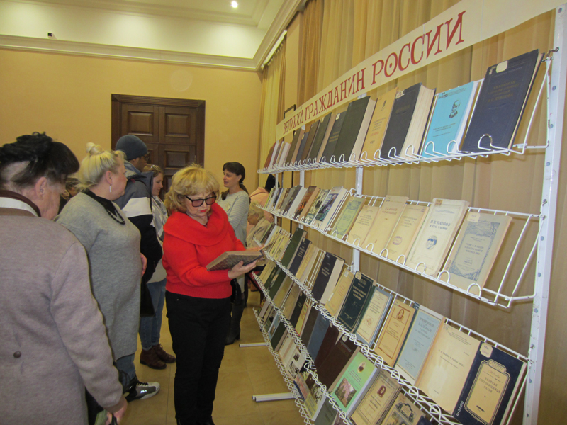 Библиотекари к этому мероприятию подготовили книжную экспозицию «Великий гражданин России». На выставке были представлены книги (в том числе прижизненные издания), рассказывающие о рязанском периоде жизни выдающегося ученого, его учебе в Санкт-Петербургском университете, его научной деятельности.