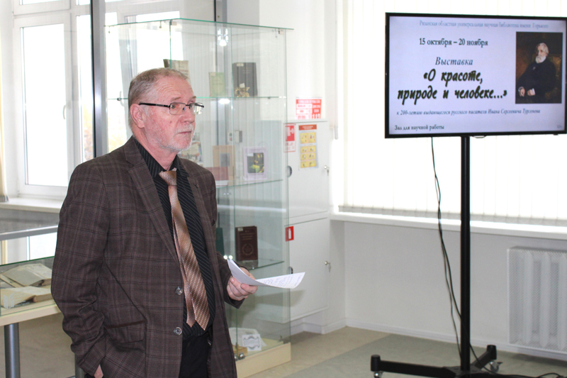 В зале научной работы состоялось открытие выставочного проекта «О красоте, природе и человеке…», посвященного 200-летию со дня рождения русского писателя Ивана Сергеевича Тургенева. Открытие выставки стало первым событием в череде мероприятий, подготовленных библиотекой в рамках празднования юбилея писателя.