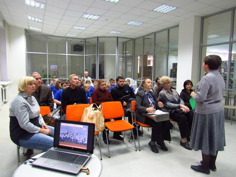 Встреча была посвящена осенней акции «Всемирные Дни наблюдения птиц», которая проводится ежегодно с целью привлечения внимания людей к миру птиц, к проблемам сохранения мест их обитания. По решению Союза охраны птиц России, в этом году учет пернатых странников на просторах нашей необъятной родины можно будет вести целую неделю (с 28 сентября по 6 октября), вместо обычных двух дней. Принять участие в переписи птичьего населения сможет любой желающий, достаточно будет посчитать всех встреченных за единицу времени в определенном месте птиц и заполнить анкету на www.biodat.ru.
