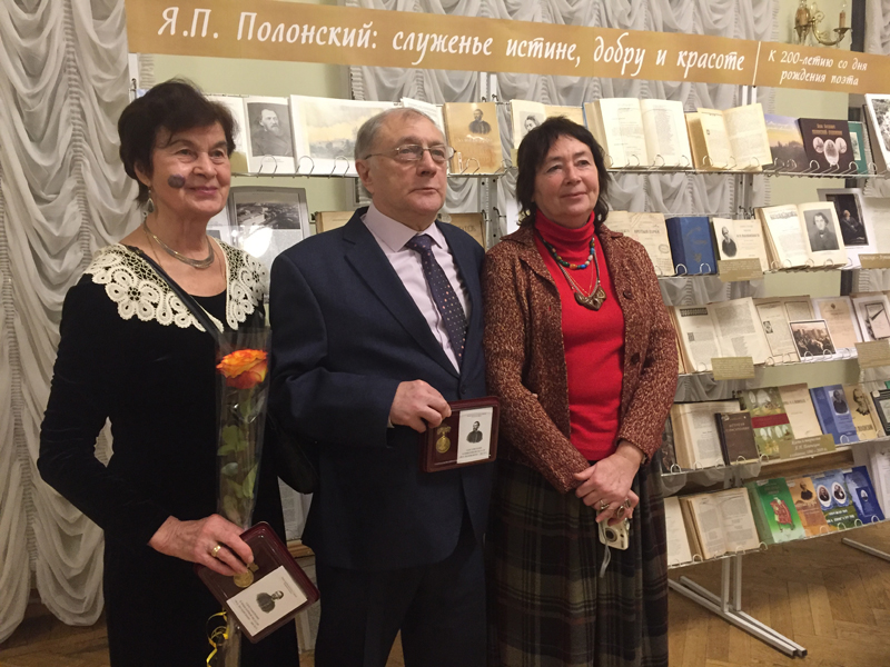 От имени губернатора Рязанской области собравшихся приветствовал министр культуры и туризма региона Виталий Попов. Министерством культуры и туризма Рязанской области в 2019 году учреждена юбилейная медаль «200 лет Якову Полонскому» (автор медали Раиса Лысенина). За многолетнюю и плодотворную работу по изучению и пропаганде творчества выдающегося поэта эту медаль получили известные деятели культуры. Первой пригласили на сцену для вручения высокой награды директора Рязанской областной универсальной научной библиотеки им. Горького Наталью Гришину. Юбилейную медаль получила также и Людмила Пронина, много лет возглавляющая работу по сохранению и продвижению наследия поэта.