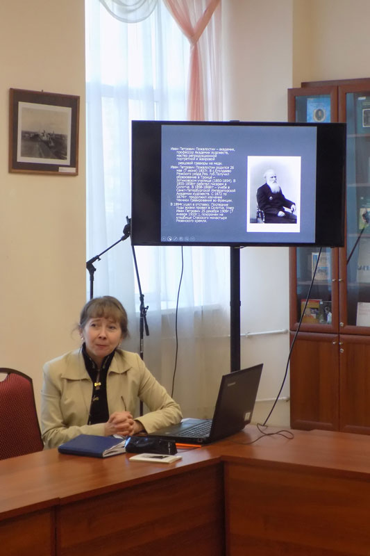Перед учащимися школы №9 выступила научный сотрудник Дома-музея И.П. Пожалостина в Солотче Светлана Васильевна Ерохина. Она представила ребятам фильм, презентацию об Иване Петровиче, познакомила с биографией знаменитого гравера.