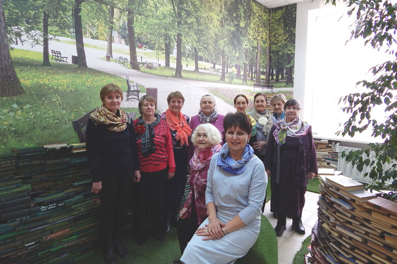 «Фестиваль» красочно завязанных платков завершился фотосессией. Библиотека, очень интерьерная, имеет огромное количество зон для фотографирования, в том числе новых, появляющихся с завидной регулярностью. «Сад знаний», лестницы, резные столики и скамейки – все это давно уже не просто фоны, а действующие элементы в многочисленных фотографиях клуба.