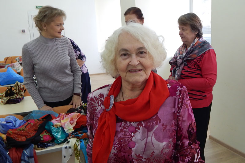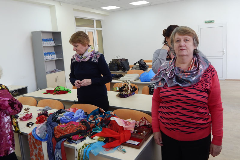 В первый весенний выходной, 3 марта, клуб любителей компьютера и интернета «Свет в окне» собрался на очередную встречу. Очный состав клуба - женский, и это заседание было посвящено созданию весеннего образа: собравшиеся учились украшать одежду платками, палантинами и шарфиками. Интернет заполнен видеосюжетами и графическими образами на эту тему, и наши дамы могли всё это, конечно, посмотреть самостоятельно. Но отдельное удовольствие – увлеченно выбирать из пестрой кучи подходящий к одежде платок себе и другим, осваивать рисунки узлов, примерять их, смотреть на себя в зеркало и удивляться, удивляться, удивляться…