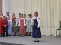 Необычайно красиво выступил фольклорный ансамбль, представивший развернутую картину народной жизни с ее многовековыми традициями, календарными весенними обрядами, замечательными образцами народных песен различных областей России. Были исполнены заклички Смоленской области «Агу весна, агу красна», «Ай, весна-красна - тепло летечко», весенняя песня Тверской области «На Ягорье по утру» (Мария Китова), свадебная песня «Пошла наша Дуня» (Маргарита Хромова), сказка «Кот-котофей» (София Горяинова), скоморошина Новосибирской области «А и где же было видывано».