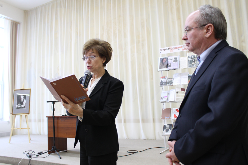 В канун проведения мероприятия библиотека получила в дар от Наталии Дмитриевны Солженицыной пятый том «Солженицынских тетрадей», изданный в 2016 году. «Одна из глав сборника посвящена герою нашей встречи Владимиру Александровичу Мазаеву», – подчеркнула Н.Н. Гришина.