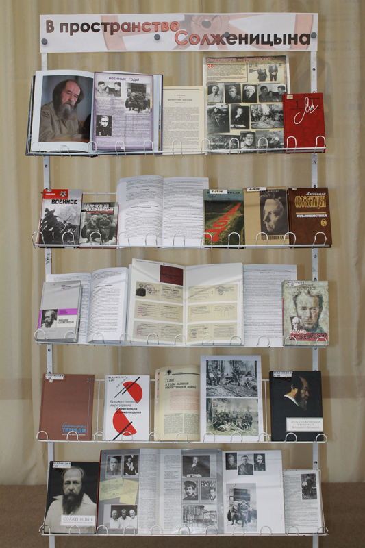 Большой интерес у гостей мероприятия вызвала книжно-иллюстративная выставка «В пространстве Солженицына».