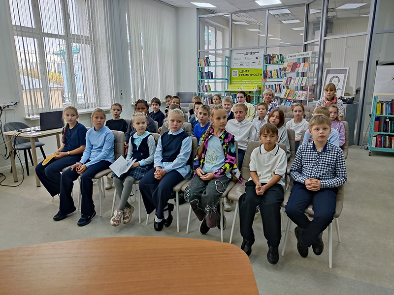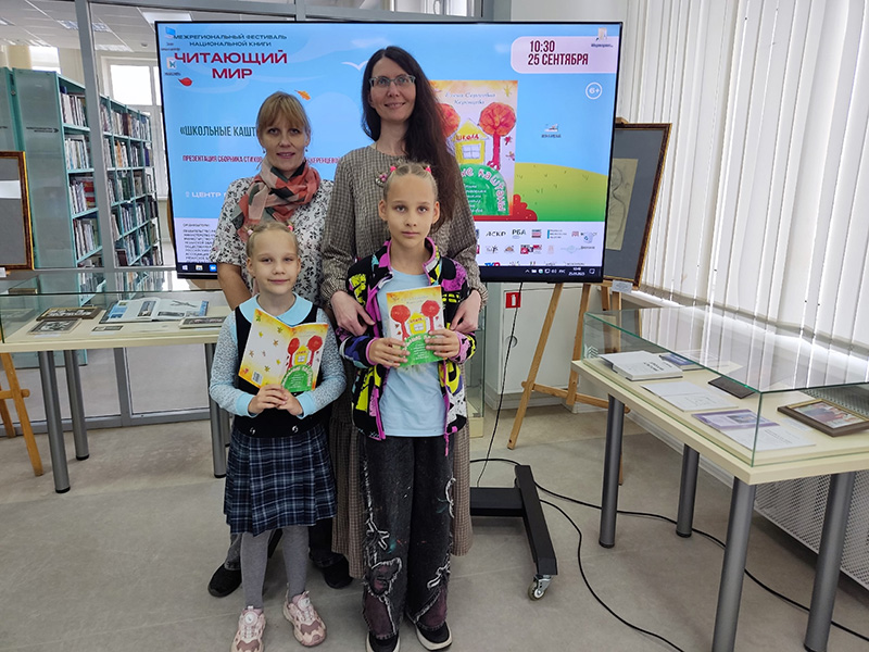 В рамках Межрегионального фестиваля национальной книги «Читающий мир» прошла презентация сборника стихов для детей Елены Керенцевой «Школьные каштаны». Писательница рассказала учащимся о своем творческом пути и познакомила их со своей новой книгой. В этот сборник вошли стихотворения с творческими заданиями про школу и дружбу. Дети узнали, что Елена не только пишет стихи, но и песни, которые исполняет под гитару.