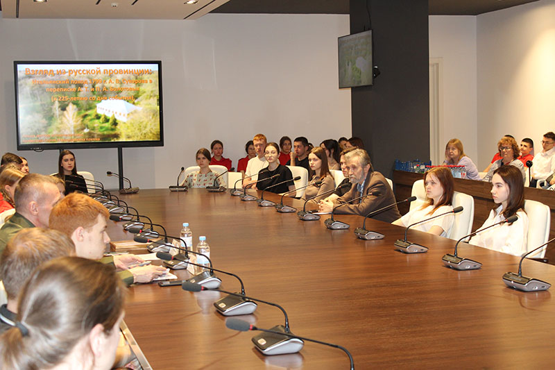 Темой сегодняшней встречи стал итальянский поход А.В. Суворова 1799 года и его отражение в переписке тульского помещика, писателя и ученого Андрея Тимофеевича Болотова (1738–1833) с сыном Павлом (1771–1850).