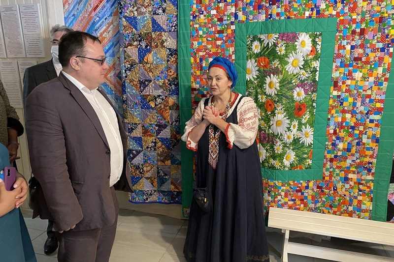 Министр культуры и туризма Рязанской области Виталий Попов поблагодарил инициатора открытия музея, руководителя творческого объединения «Дар» Елену Венедиктову за активную работу по развитию и популяризации рязанского лоскутного шитья.