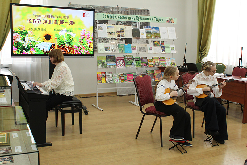 Украшением праздника стала концертная программа, подготовленная педагогами и учащимися детской школы искусств № 5. Большой интерес у присутствующих вызвали фотографии из архива клуба и книжная выставка «Садоводу, настоящему Художнику и Творцу», при оформлении которой были использованы материалы по истории клуба и труды людей, внесших вклад в его развитие.
