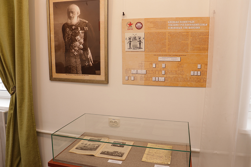 Выставка рассказывает о судьбе трех поколений потомков великого русского географа Петра Петровича Семёнова-Тян-Шанского в годы Великой Отечественной войны и блокады Ленинграда.