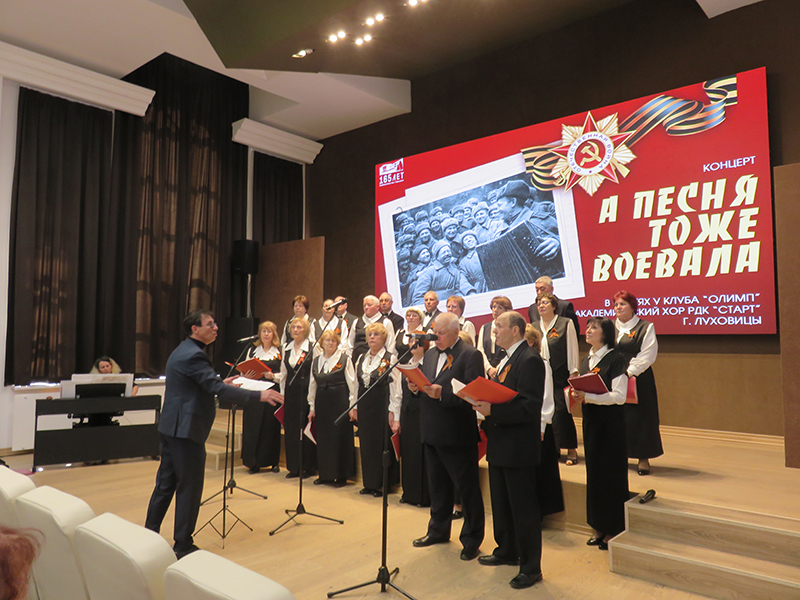 В канун 78-й годовщины Великой Победы в клубе «ОЛИМП» состоялся праздничный концерт «А песня тоже воевала», подготовленный Академическим хором РДК «Старт» г. Луховицы Московской области. Художественный руководитель и дирижер – Олег Усов, концертмейстер – Елена Новикова.
