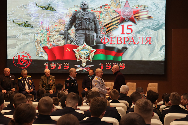 Присутствовавшие на вечере курсанты Рязанского филиала Московского университета Министерства внутренних дел Российской Федерации имени В.Я. Кикотя и кадеты школ № 58 и № 33 приняли активное участие в диалоге с ветеранами.