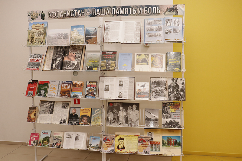 Вечер памяти сопровождали три экспозиции. Это книжная выставка «Афганистан – наша память и боль», выставка фотографий воинов-афганцев и выставка военного снаряжения.