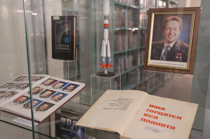 19 сентября в библиотеке имени Горького открылась выставка «Аксенов: полет длиною в жизнь», посвященная 90-летию со дня рождения Владимира Викторовича Аксенова, летчика-космонавта, дважды Героя Советского Союза, уроженца Рязанской земли.