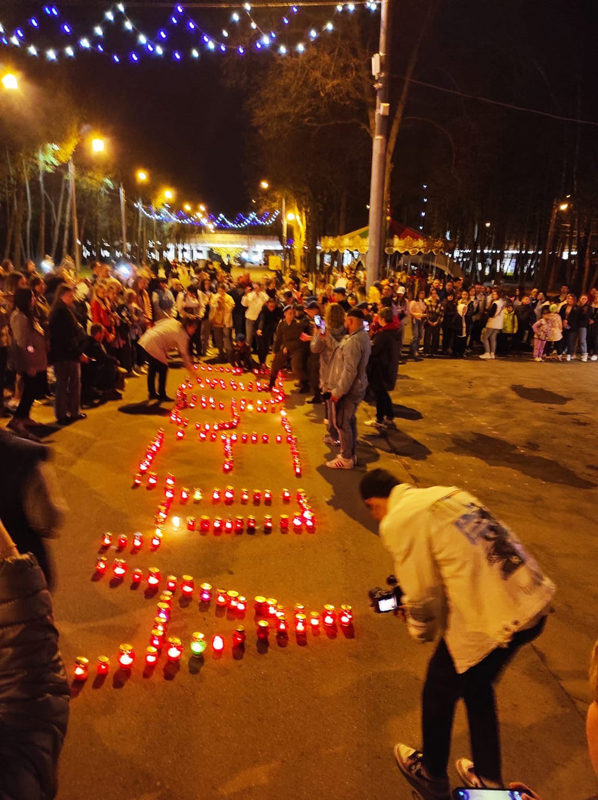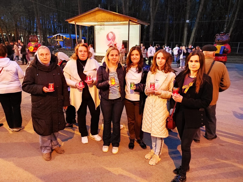 Накануне 77-й годовщины Великой Победы в Лесопарке прошла патриотическая акция «Свеча Победы», в рамках которой более 300 рязанцев выложили слово «ПОБЕДА» из горящих лампадок, в акции приняли члены профсоюзной организаций Рязанской областной библиотеки имени Горького и волонтеры культуры.
