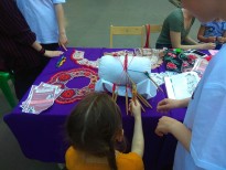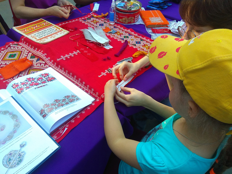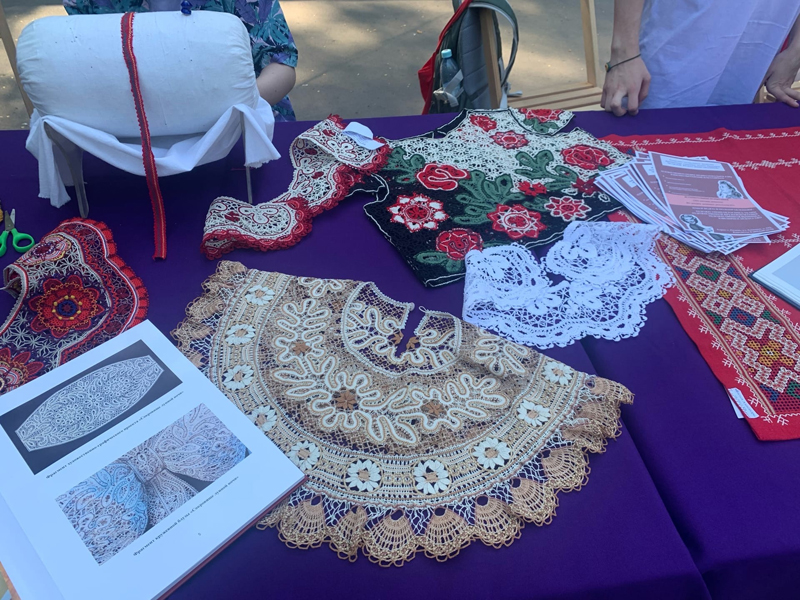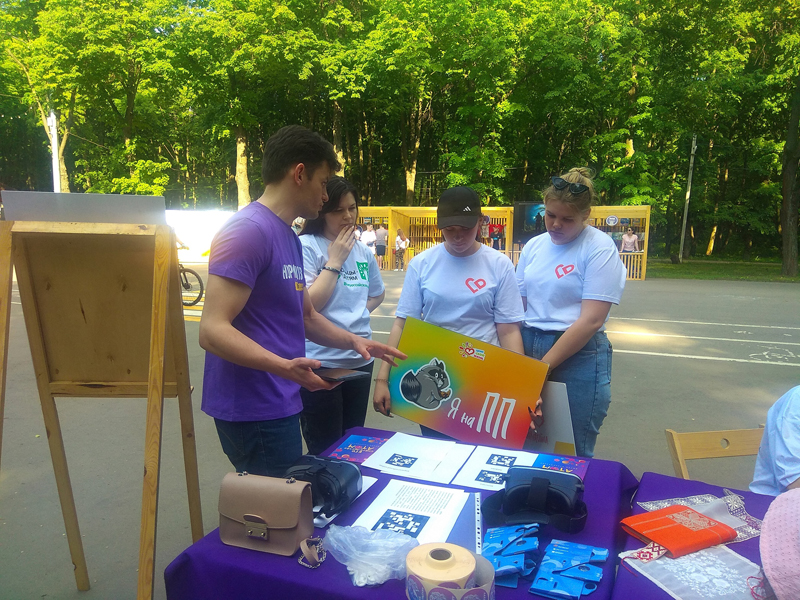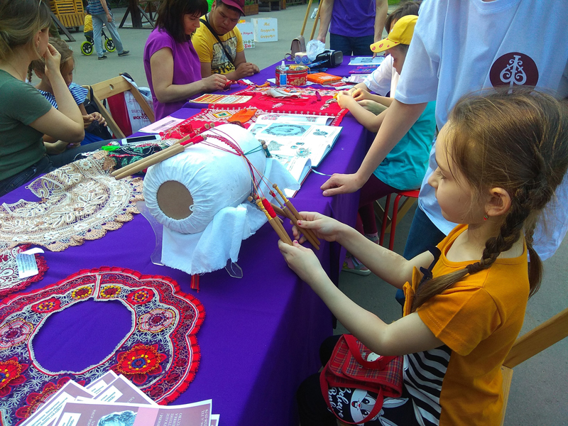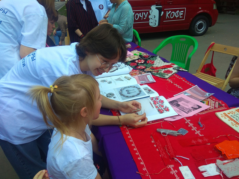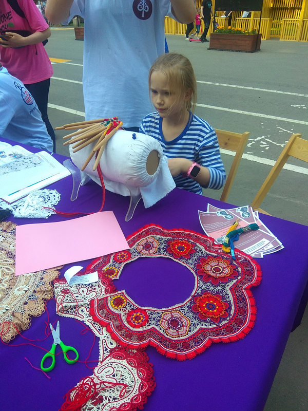 На площадке волонтеров культуры и Высшей школы народных искусств все желающие могли попробовать свои силы в вышивании брошей, браслетов, закладок для книг или в плетении кружева на коклюшках. Волонтеры науки предоставили возможность участникам погрузиться в мир виртуальной и дополненной реальности.