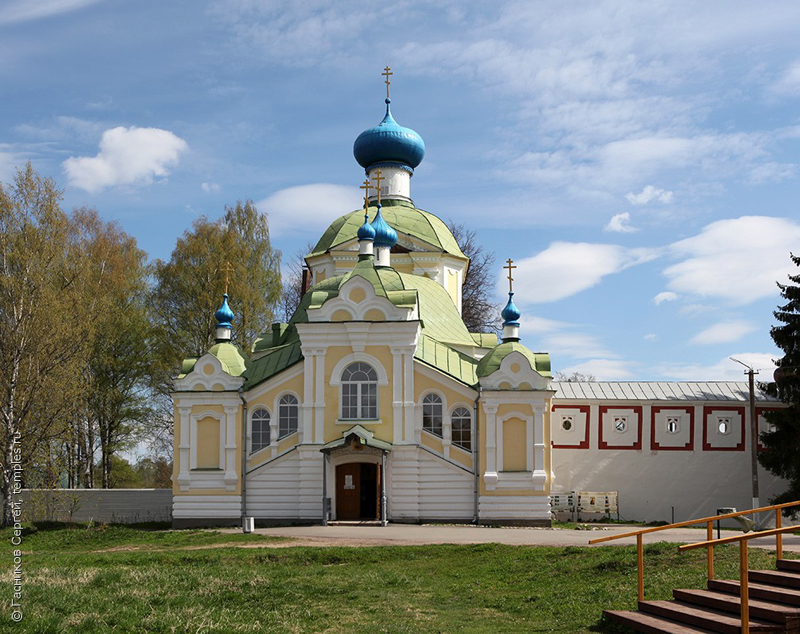 Церковь во имя Тихвинской иконы Богородицы была устроена во Введенской башне западной монастырской стены в 1791 году. Необычная и яркая, церквушка напоминает терем из сказки. На высоте около 5 метров, была написана фреска, к которой вело высокое деревянное крыльцо. В 1865 г. на этом крылечке произошло исцеление тихвинского мещанина Александра Боровского. В 1861-1863 гг. церковь была перестроена по проекту Н.Л. Бенуа. На месте деревянного крыльца появилось каменное с часовней «Крылечко», по имени которой и именуют теперь этот храм.