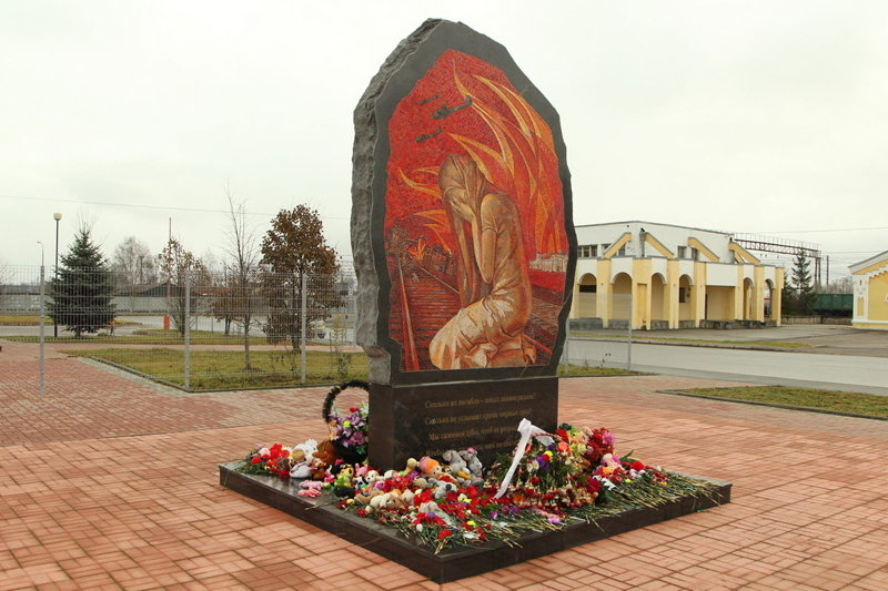 14 октября 1941 г. – страшный день в истории Тихвина. Немецкие войска совершили налёт на город и сбросили бомбы на эшелоны, полные раненых и истощённых детей. Бомбёжка продолжалась 6 часов. Из-за сильнейшего пожара к железнодорожной станции не смогла подойти помощь – более двух тысяч человек погибли в огне. Останки умерших были захоронены в братской могиле, на которой 75 лет спустя установили памятный монумент. Памятники трагическим событиям возвышаются на улицах города, как символы утрат и скорби.