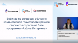 Состоялся вебинар для преподавателей и организаторов курсов компьютерной грамотности для пенсионеров по программе «Азбука интернета». Эта программа – совместный проект «Ростелекома» и Пенсионного фонда России, в рамках которого выпускаются учебное пособие, методические материалы, проводятся занятия с пенсионерами.