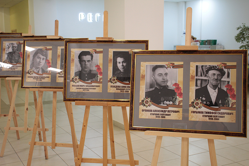 Сотрудники библиотеки разместили на выставке фотографии своих героев, родных и близких. Эта акция – дань благодарности нашим защитникам Родины, прошедшим войну на полях сражений и трудившихся в тылу.