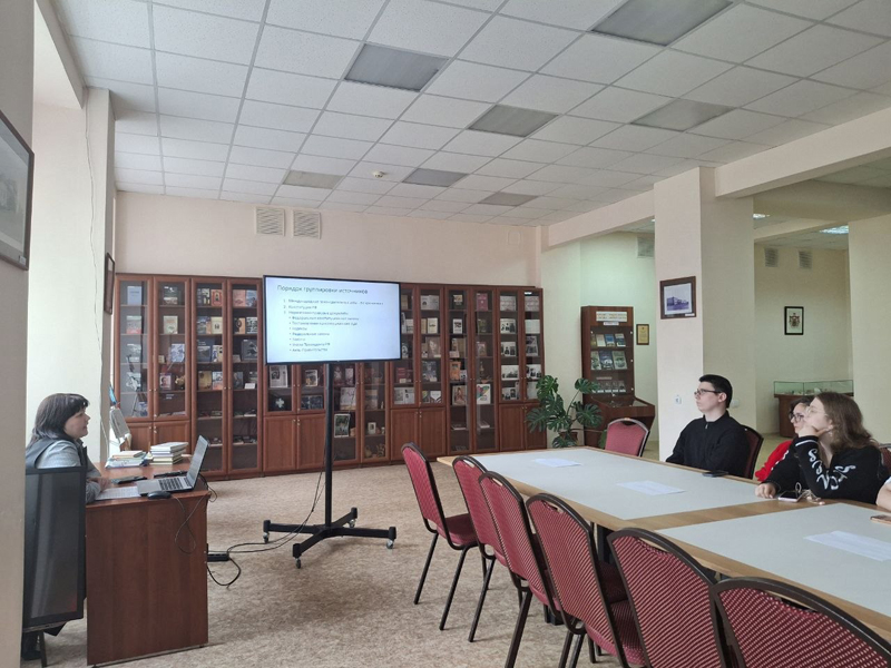 Главный библиограф библиографического центра Оксана Николаевна Донцова рассказала о том, как правильно описывать документы в соответствии с ГОСТами, провела практическое занятие по оформлению списков литературы, познакомила со справочно-библиографическим аппаратом и информационными возможностями нового библиотечного сайта.