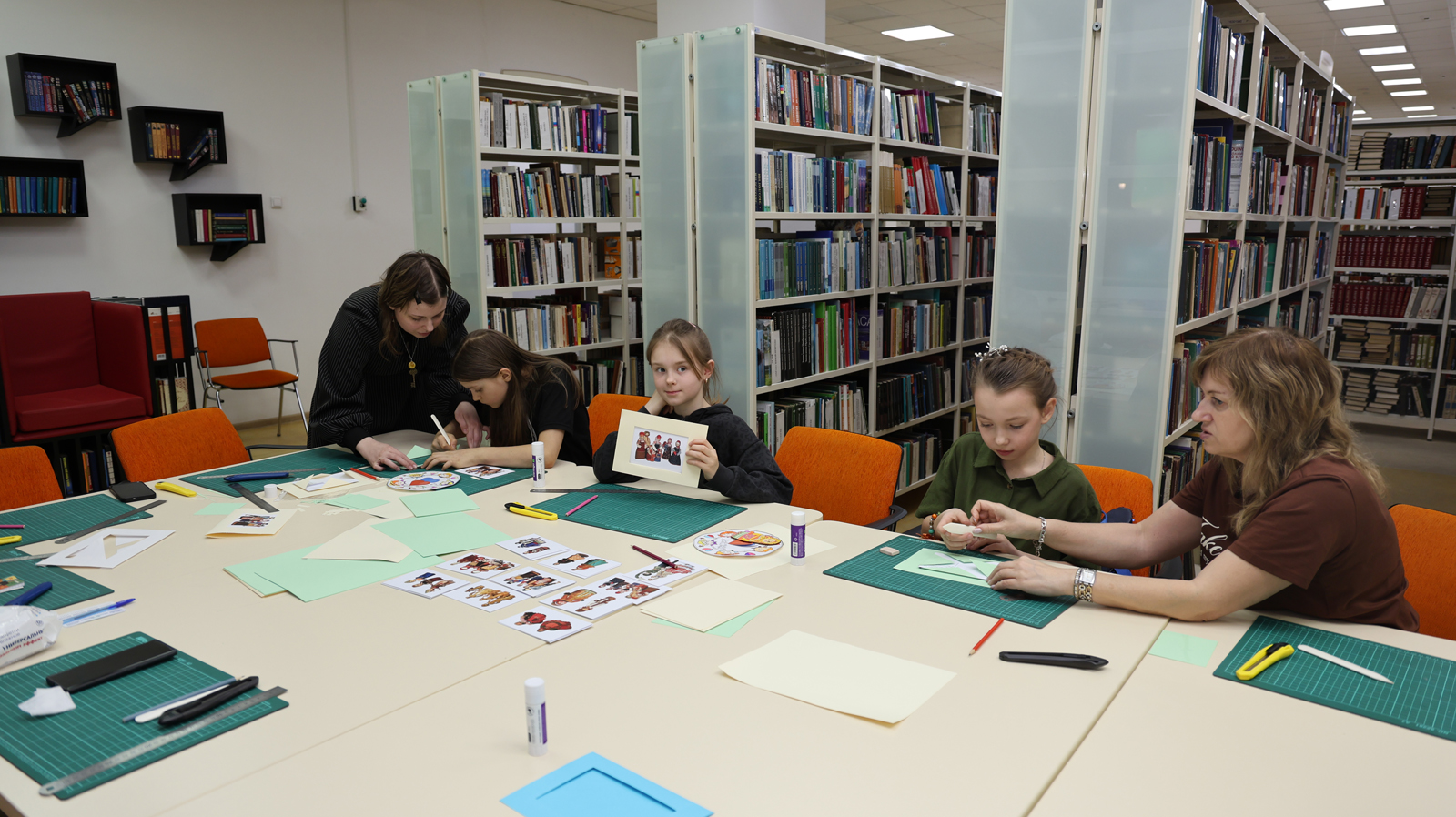 Для самых маленьких посетителей была организована площадка «Библионочь: детское измерение» с настольной игрой «Народы России: путешествие в картинках», мастер-классами «Раскраска» и «В дружном хороводе».
