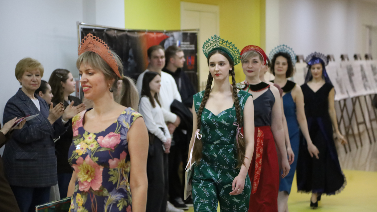 Души и рук творенье – так мы можем описать все то, что с большой любовью создано в народных промыслах, которые сегодня обретают новую жизнь. Вдохновляются прошлым и современные дизайнеры-модельеры. Одним из самых ярких событий «Библионочи» стал показ коллекции дизайнерской одежды и головных уборов ремесленной работы по мотивам народных сказок «Утро. День. Ночь» (дизайнер-модельер – Маргарита Николаевна Лугина, г. Рязань) и кружевных кокошников (дизайнер-модельер – Елена Виневская (Чушкова), г. Донецк, Донецкая Народная Республика). Обе мастерицы – участницы показов фестиваля лоскутной моды «Шили-были и носили». Состоялось и дефиле от школы моделей «Вега».