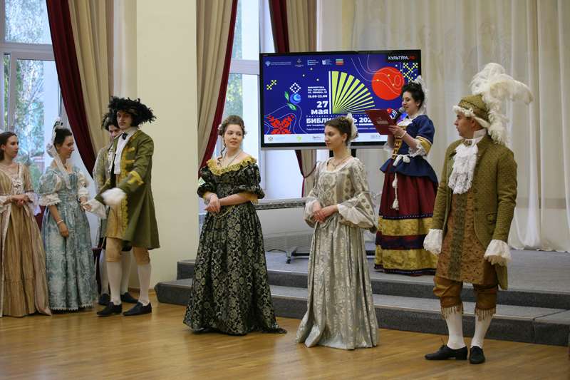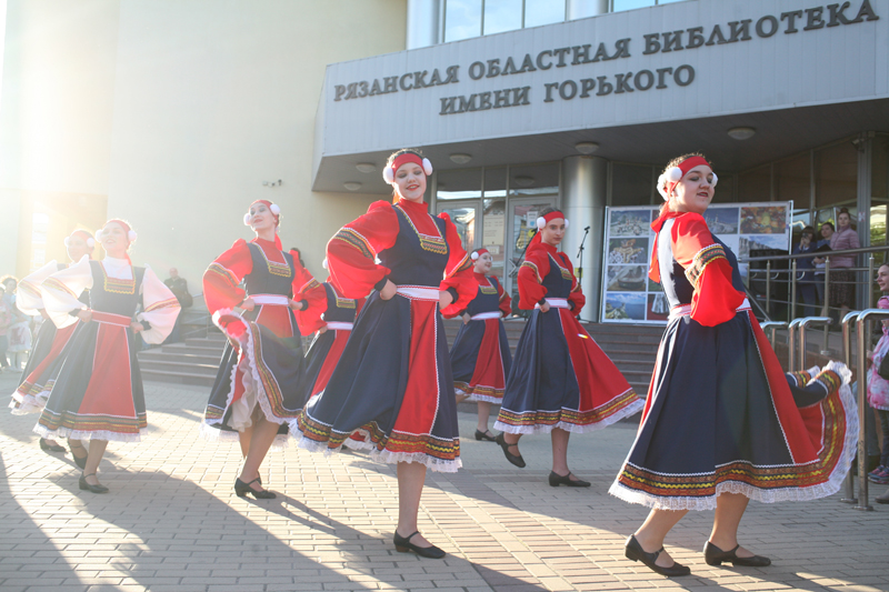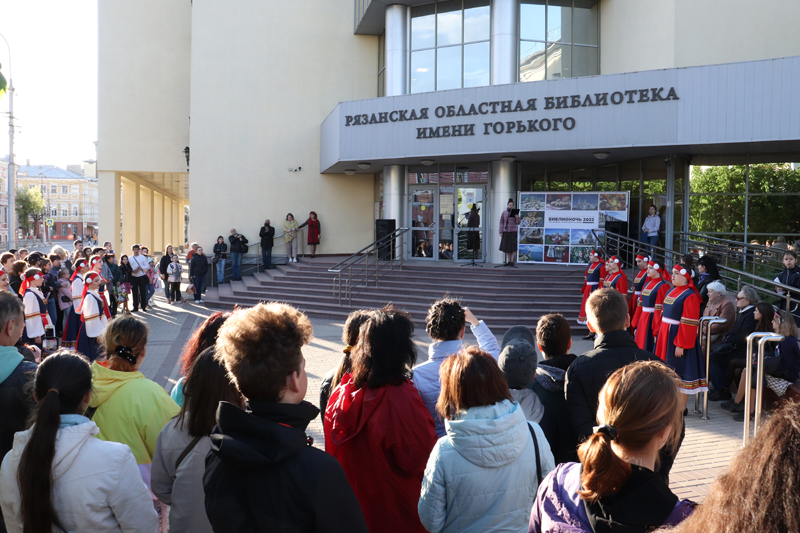 Украшением «Библионочи» стали концерт детского сводного духового оркестра Рязани «Музыкальная мозаика», отрывок из спектакля театральной студии «Шанс» «Вниз по радуге скользя», театральный диалог к 130-летию Константина Паустовского «Беседы о писателе» от Рязанского театра драмы и блистательный бал Петербурга от студии «Белый бал».