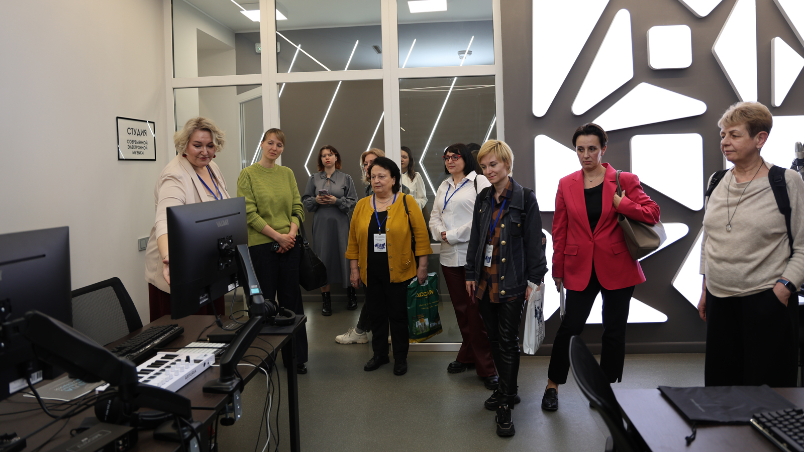 После завершения деловой программы всех гостей площадки «Библиотечное образование и кадры» ждала экскурсия по студиям Школы креативных индустрий. Педагог центра Анна Алексеевна Бурукина рассказала о направлениях сферы креативных индустрий и подготовке специалистов нового поколения.