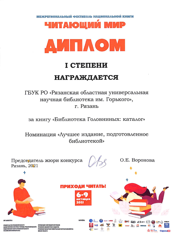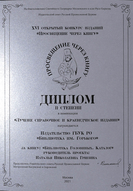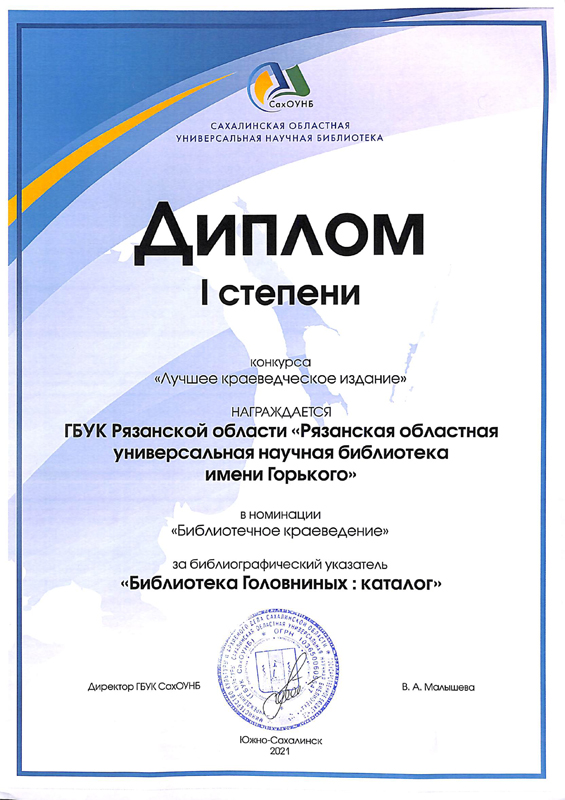 Итогом этой сложной и одновременно интересной работы стало издание каталога библиотеки Головниных, приуроченное к 245-летию со дня рождения В.М. Головнина и 200-летию со дня рождения А.В. Головнина.