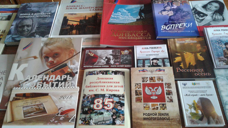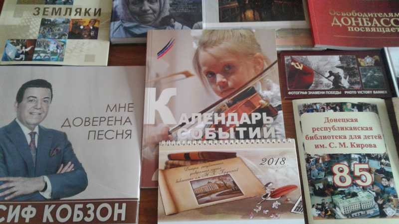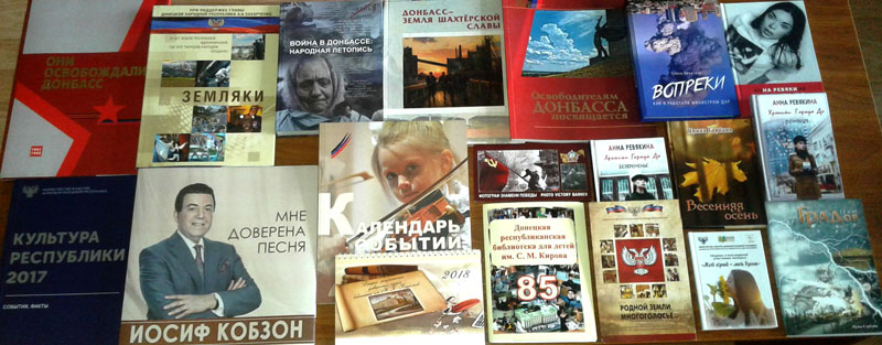 Культурная жизнь отражена в «Календаре событий – 2016», подготовленном министерством культуры Донецкой народной республики, фотоальбоме – итоге конкурса фоторабот «С чего начинается Родина», сборнике «Культура республики – 2017. События, факты». Профессиональный интерес представляют информационные материалы Донецкой республиканской библиотеки для детей имени С.М. Кирова. Не оставит никого равнодушным издание «Мне доверена песня», посвященное 80-летию Иосифа Кобзона, уроженца Донецкой области, музыкально-общественного деятеля. В альбом входит множество фотографий, тексты песен, исполняемых И. Кобзоном, фрагменты его выступлений на встречах с жителями ДНР.