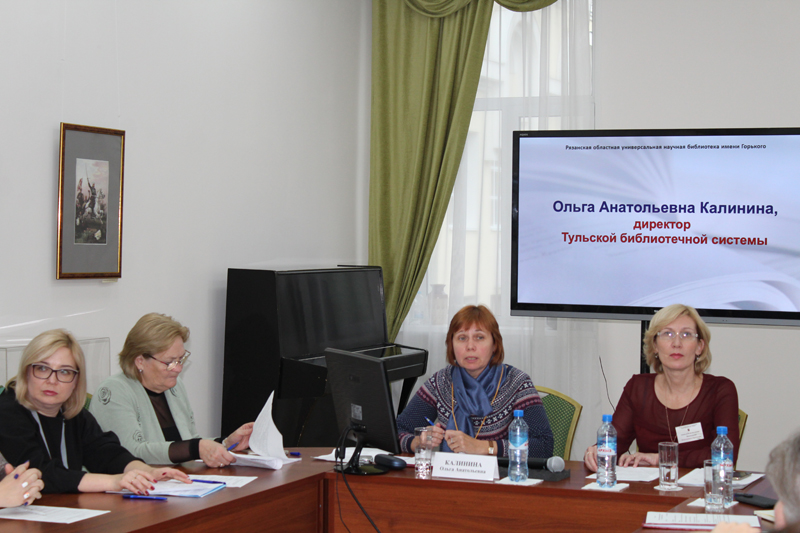 Н.Н. Гришина, директор РОУНБ им. Горького, и О.А. Калинина, директор Тульской библиотечной системы, поделились примерами разностороннего опыта деятельности библиотек. Заместитель директора библиотеки им. Горького Н.Н. Чернова рассказала о только что закончившемся Межрегиональном фестивале национальной книги «Читающий мир» и его роли в организации социокультурного пространства региона. С.А. Винокурова, заместитель директора по развитию библиотеки им. Горького, осветила задачи, стоящие перед учреждением, и заострила внимание на образовательной деятельности. Коллеги из Тульской библиотечной системы Н.М. Артемова и Т.Н. Калабина представили свой опыт работы по краеведению и программу повышения квалификации сотрудников.