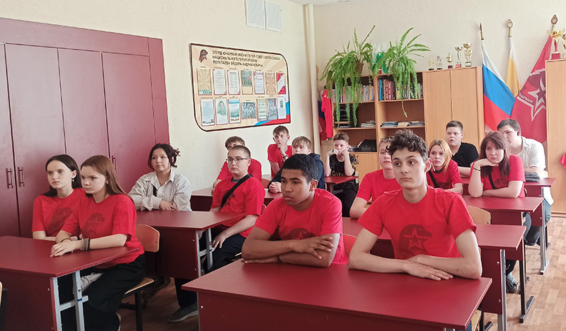 Показанные на встрече кадры из кинохроники «Штурм Берлина», «Водружение знамени Победы М. Егоровым и М. Кантария над Рейхстагом», песня «Последний бой» в исполнении М. Ножкина тронули души юнармейцев.