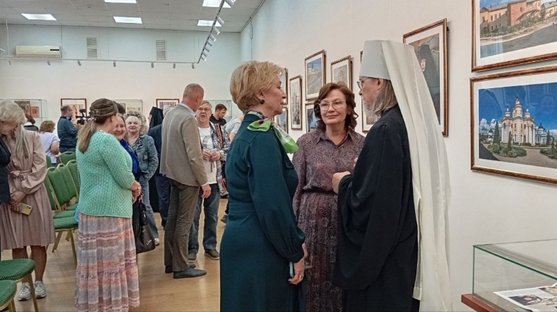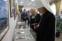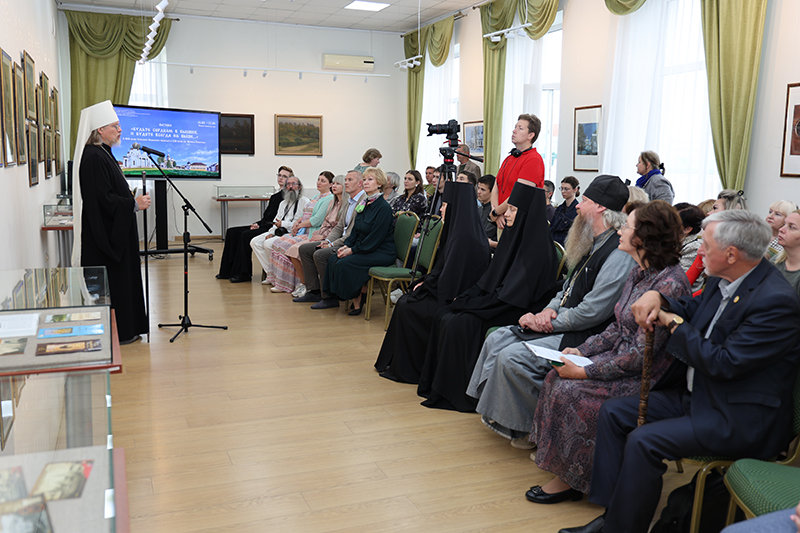В светлые дни празднования Преображения Господня в зале собрались представители духовенства, читатели библиотеки, члены подросткового клуба православного краеведения «Ставрос», краеведы, сотрудники архивов, музеев и библиотек, а также художники.